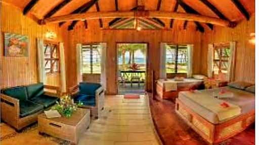 度假村设施完善,设有大型游泳池和配套日光浴设施。度假村中的房间极具斐济特色,设在热带雨林中的斐济传统草屋别墅和特色树屋,让游客轻松享受热带假期。